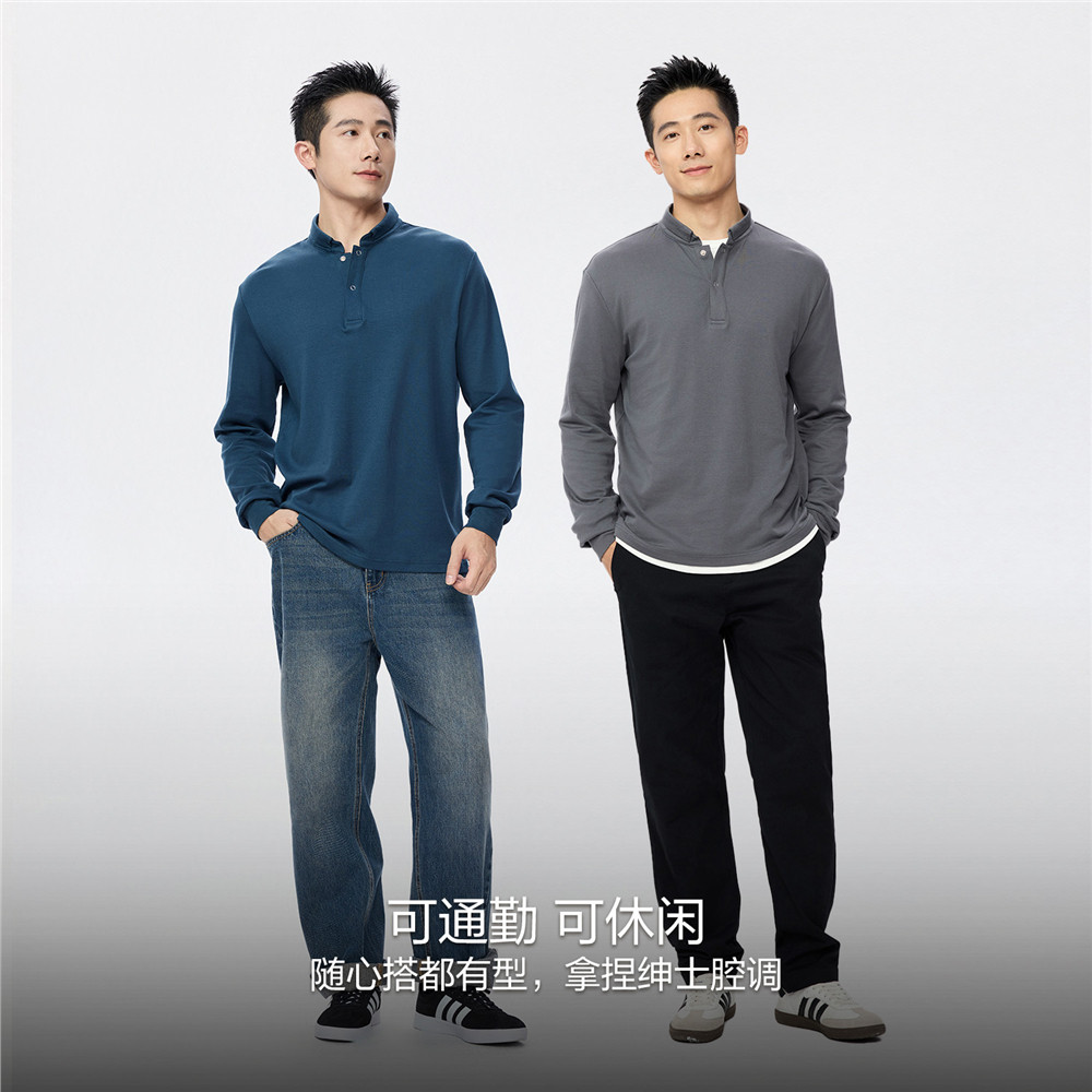 天猫佐丹奴亲肤透气Polo衫男装春季新款纯棉长袖窄翻领上衣男01015786