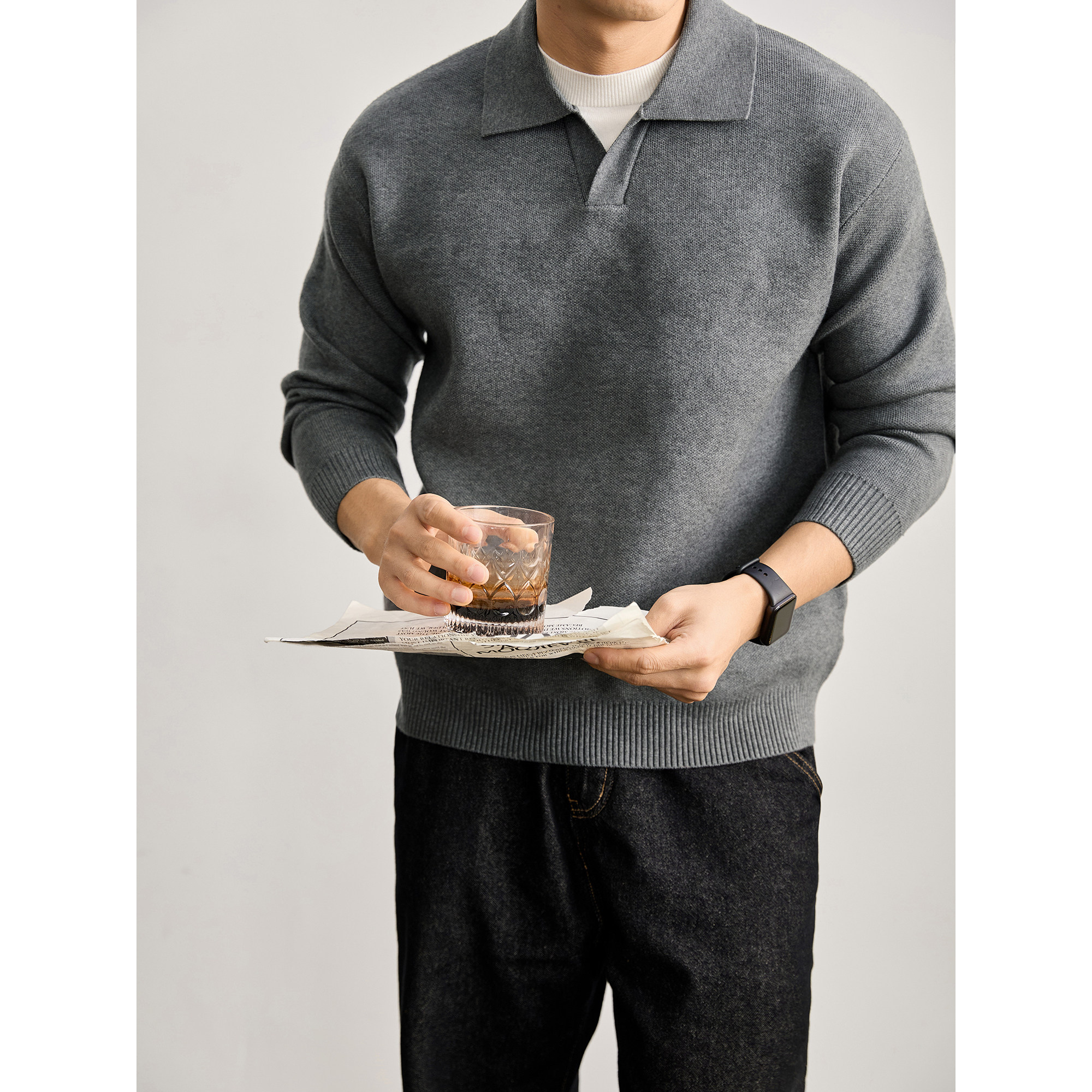 淘宝LUUD 韩版柔软POLO假两件针织衫男简约拼接轻熟内搭叠穿长袖毛衣