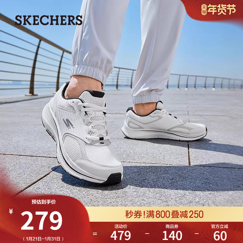 天猫斯凯奇春季男鞋百搭白运动鞋时尚休闲鞋轻便软底鞋厚底缓震跑步鞋