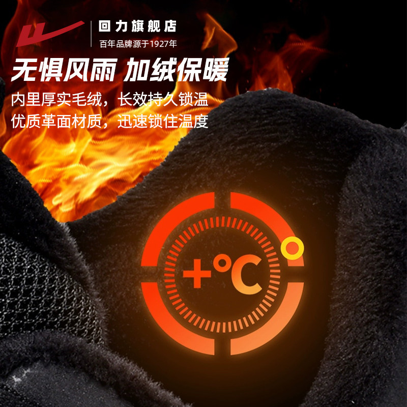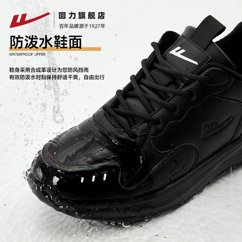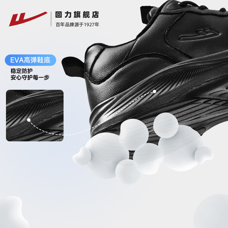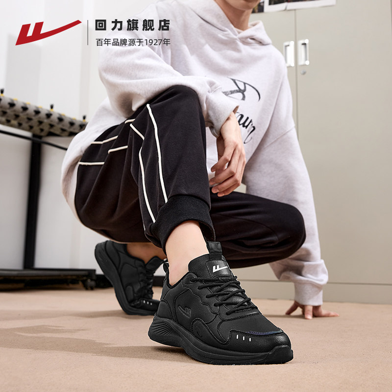 天猫回力男鞋运动鞋2025冬季新款潮流纯黑色皮面加绒棉鞋跑步鞋子男款