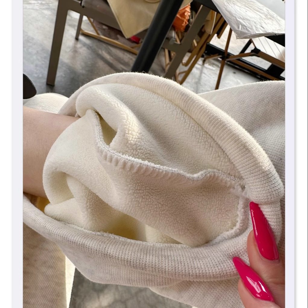 淘宝猫猫家加长女裤加绒加厚运动裤女冬季窄版阔腿保暖裤直筒休闲卫裤