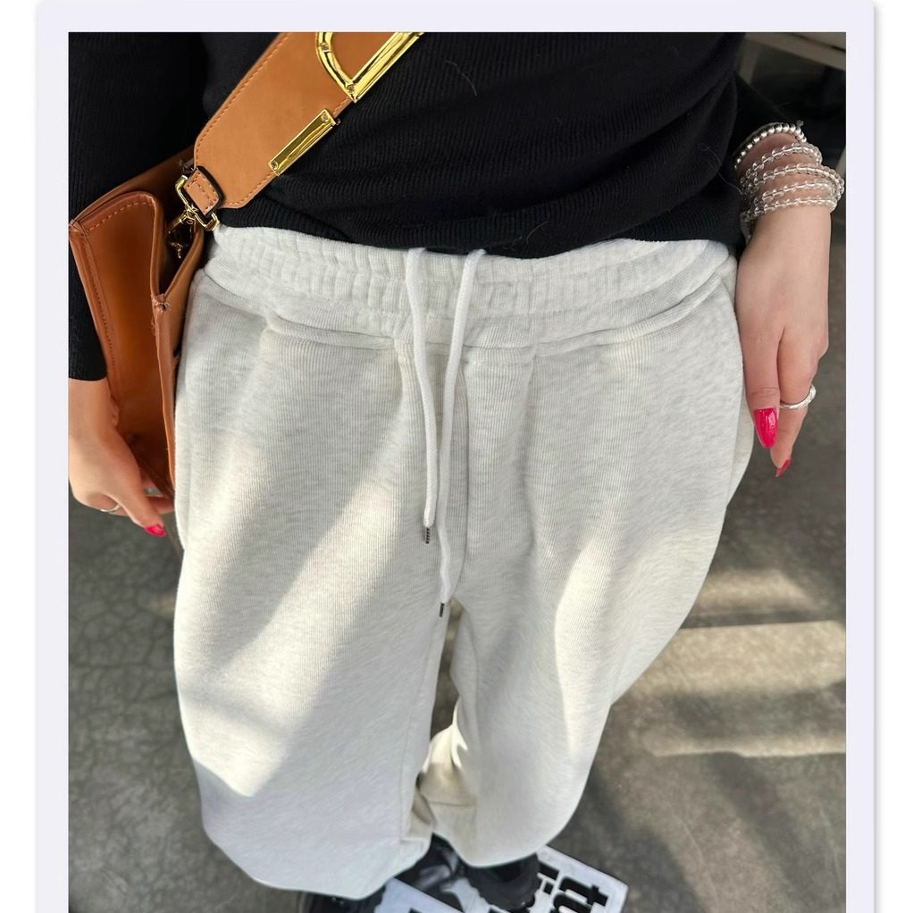 天窄版香蕉裤卫裤女秋冬裤子2025新款小个子阔腿裤运动直筒加绒灰色
