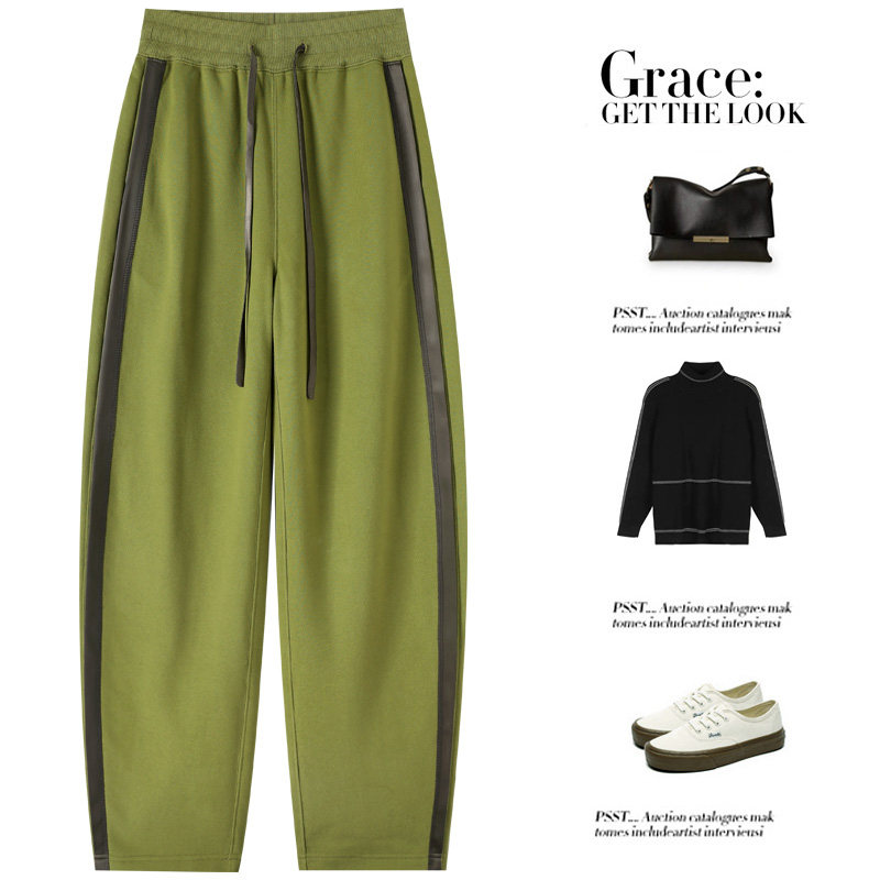 淘宝高级感设计女撞色香蕉卫裤春秋新款阔腿运动休闲宽松窄版直筒长裤