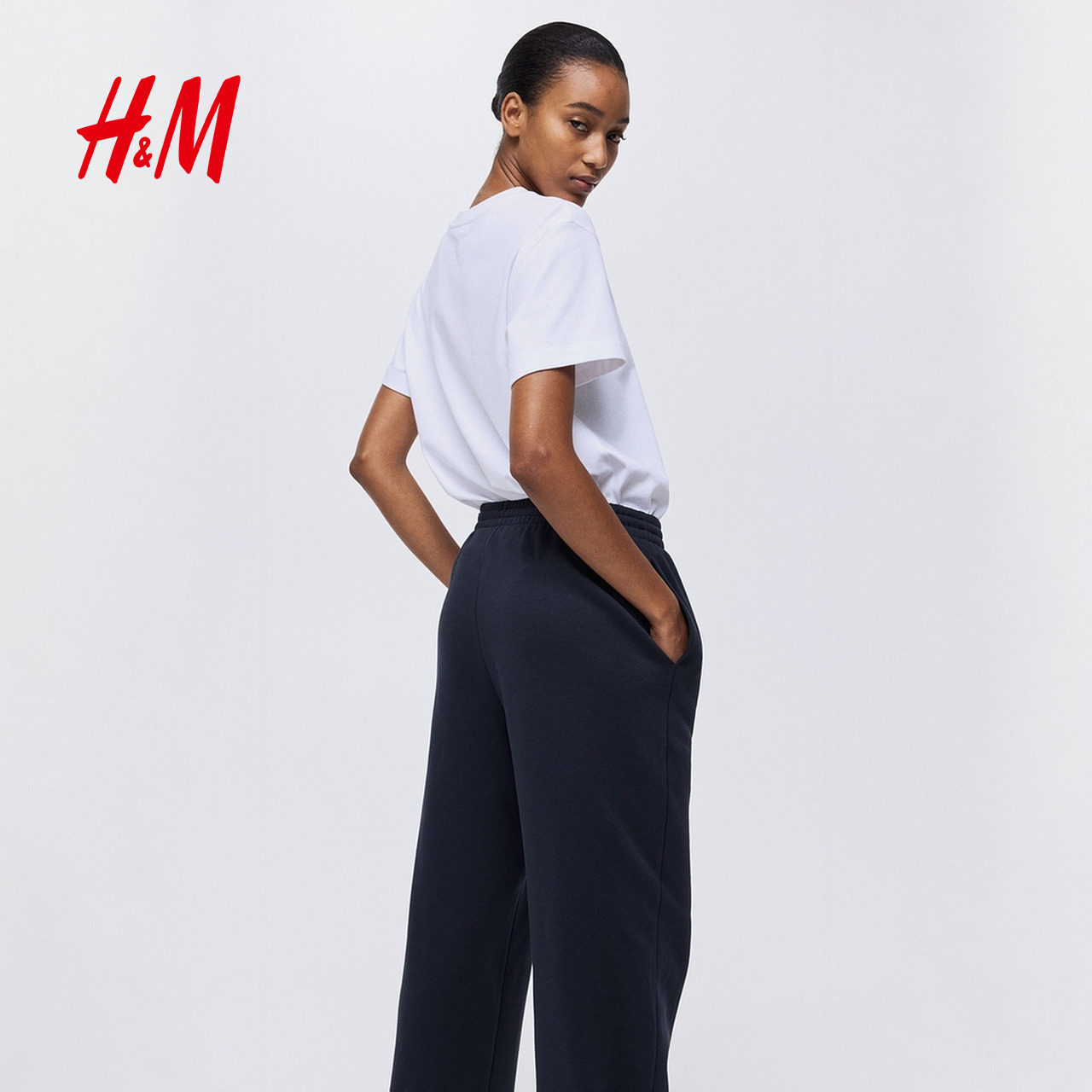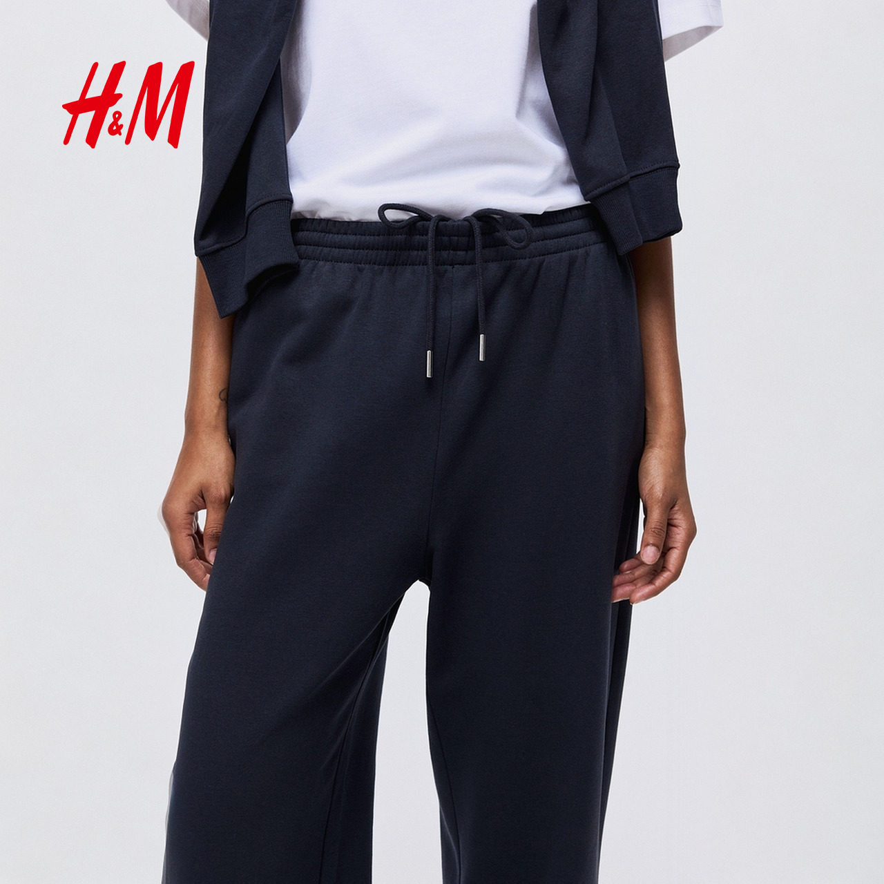 天猫HM女装卫裤冬季加绒直筒保暖松紧腰运动跑步长裤1193602