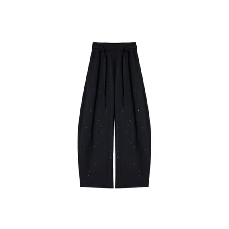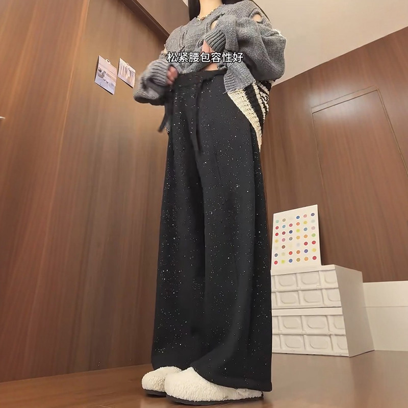 淘宝黑色烫钻弯刀裤女款阔腿运动镰刀亮片裤子胖mm大码今年流行梧桐裤