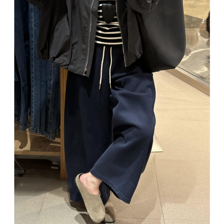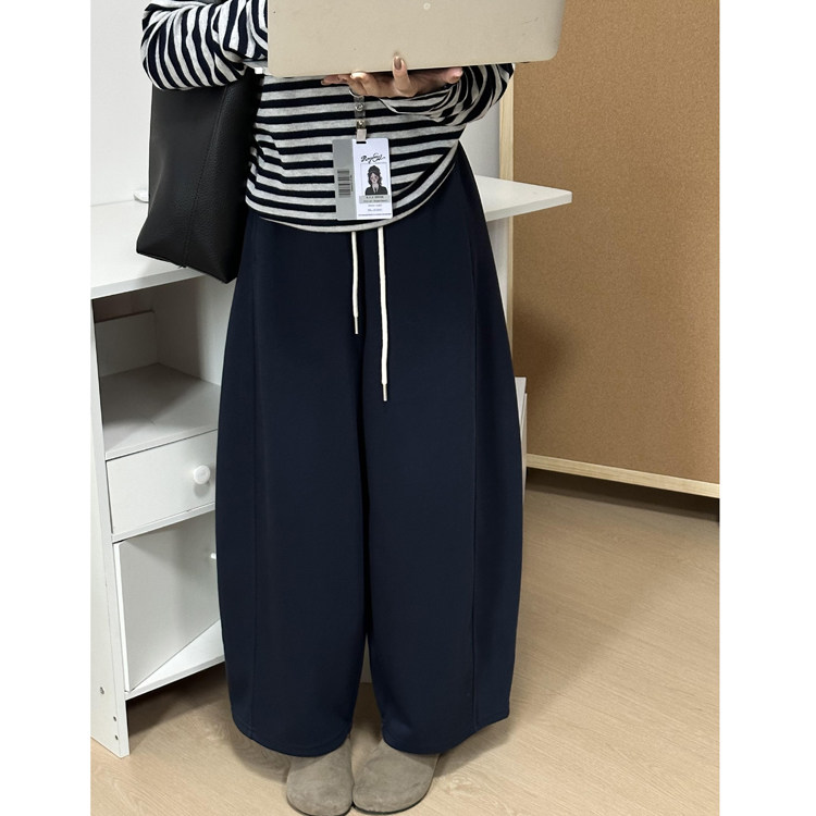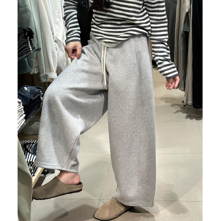 淘欧货高端定制咖色大码抽绳阔腿裤女2025冬季新款运动风百搭休闲裤