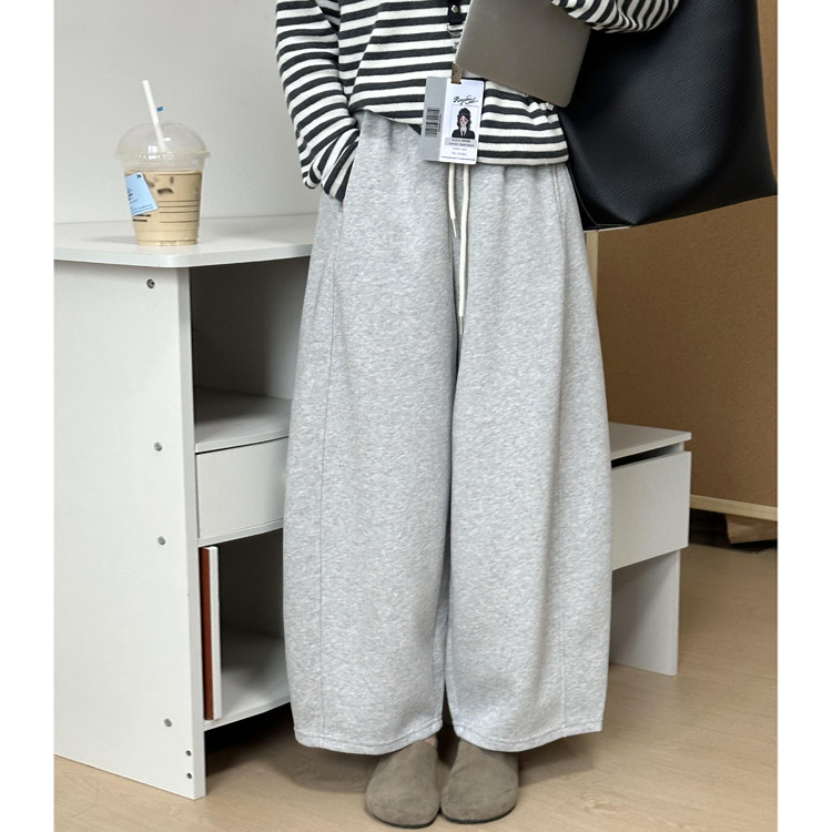 淘韩版纯色收口束脚高腰加绒运动裤女宽松加厚卫裤长裤2025秋冬学生