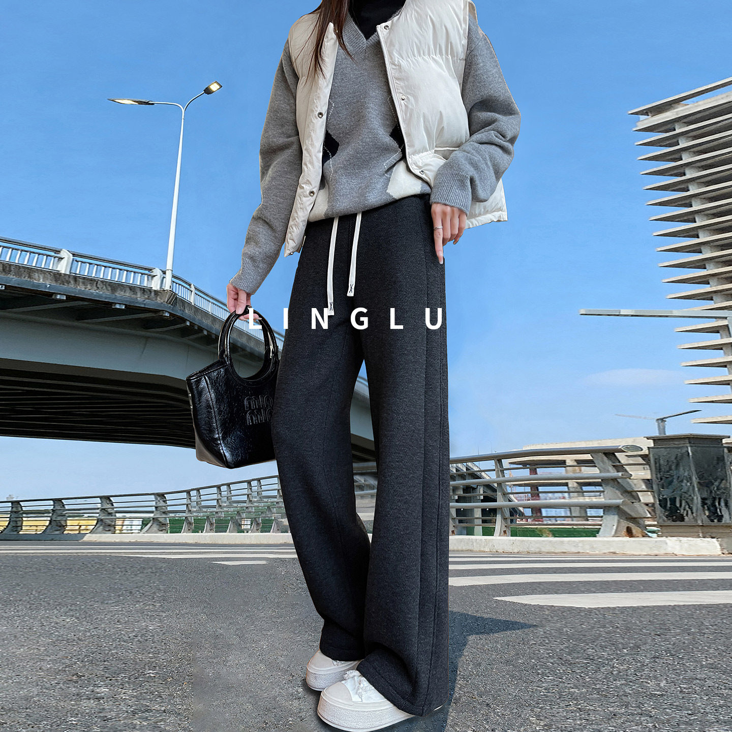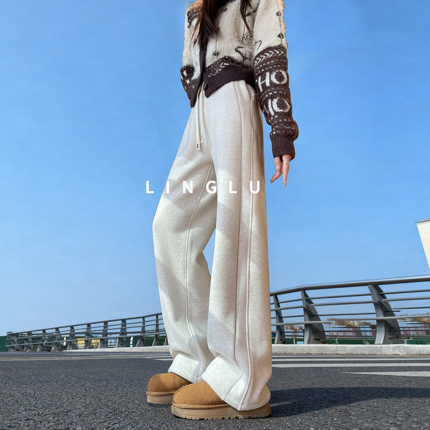淘熙薇SIVI卫裤女士设计感百搭冬季休闲圣诞款加绒直筒运动裤H6476
