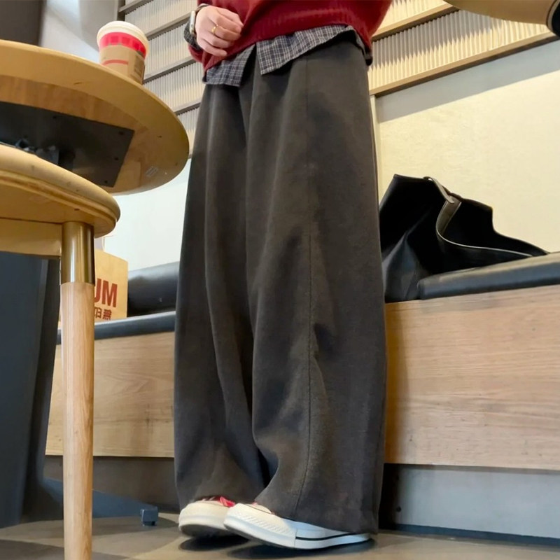 淘宝黑灰色毛呢休闲阔腿裤女款超好看梧桐裤大码2026秋冬运动加绒裤子
