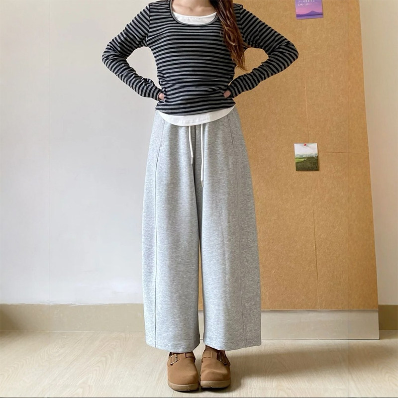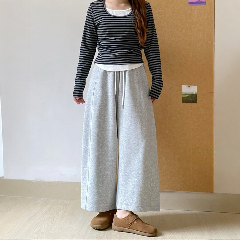 天窄版香蕉裤卫裤女秋冬裤子2025新款小个子阔腿裤运动直筒加绒灰色