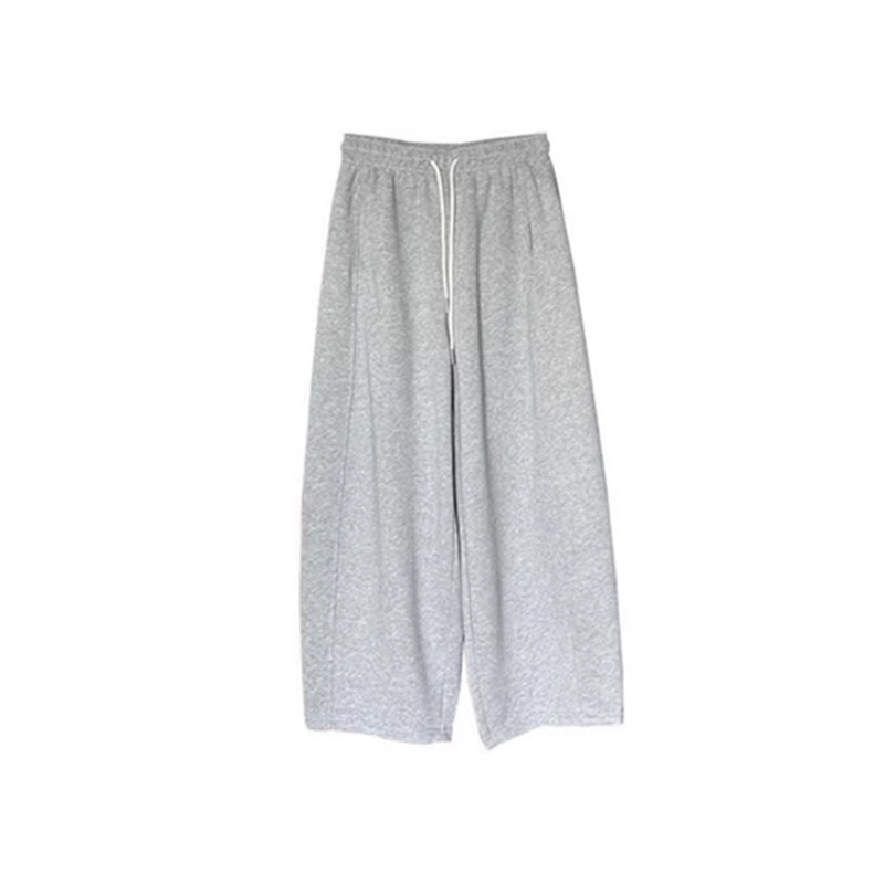 淘灰色阔腿休闲裤女春季新款胖mm大码显瘦梨型身材宽松直筒运动卫裤