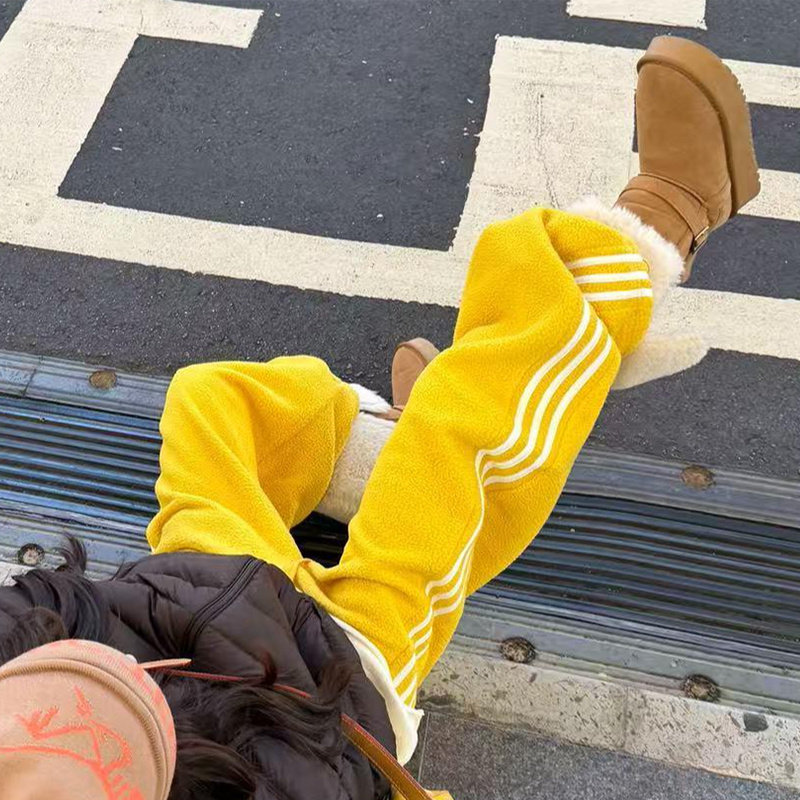 淘加绒运动卫裤女冬季休闲百搭高腰撞色加厚保暖直筒束脚两穿弯刀裤