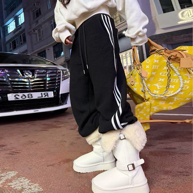 淘宝松弛感百搭加绒加厚休闲裤长裤女冬季新款摇粒绒运动裤两穿束脚裤
