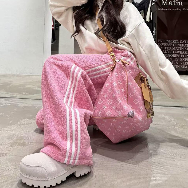 Fun休闲裤女加绒加厚2025秋冬新品潮牌宽松运动长裤舒适阔腿裤