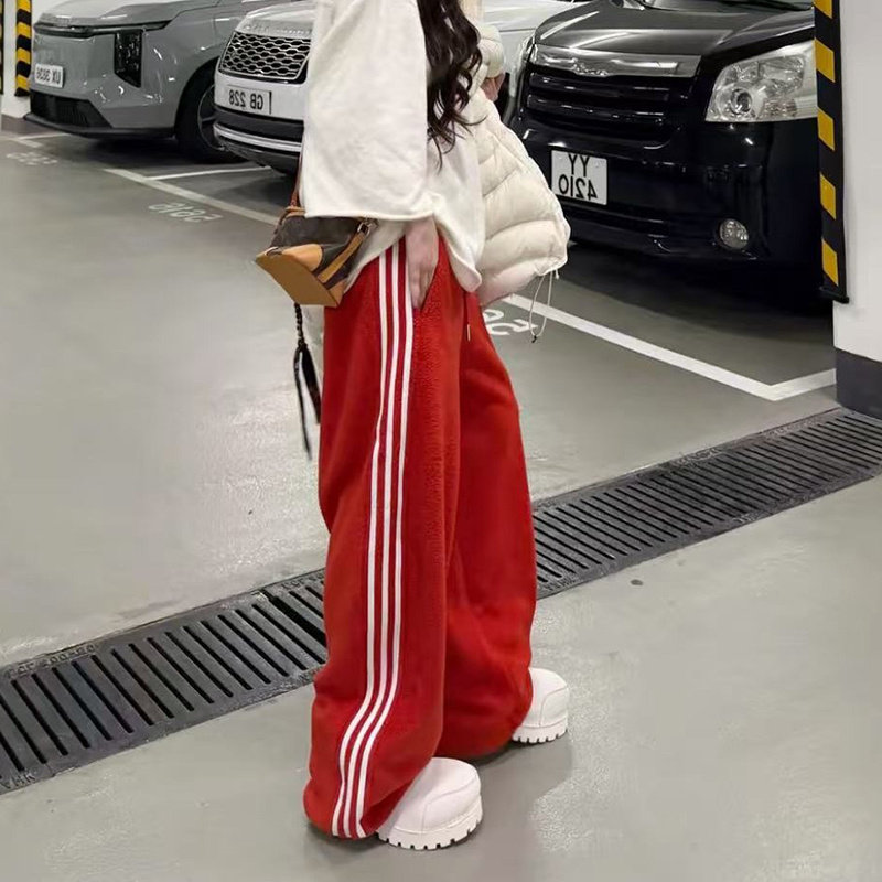 Fun2025秋冬季运动裤子抽绳阔腿裤针织裤街舞训练裤显腿直长裤女