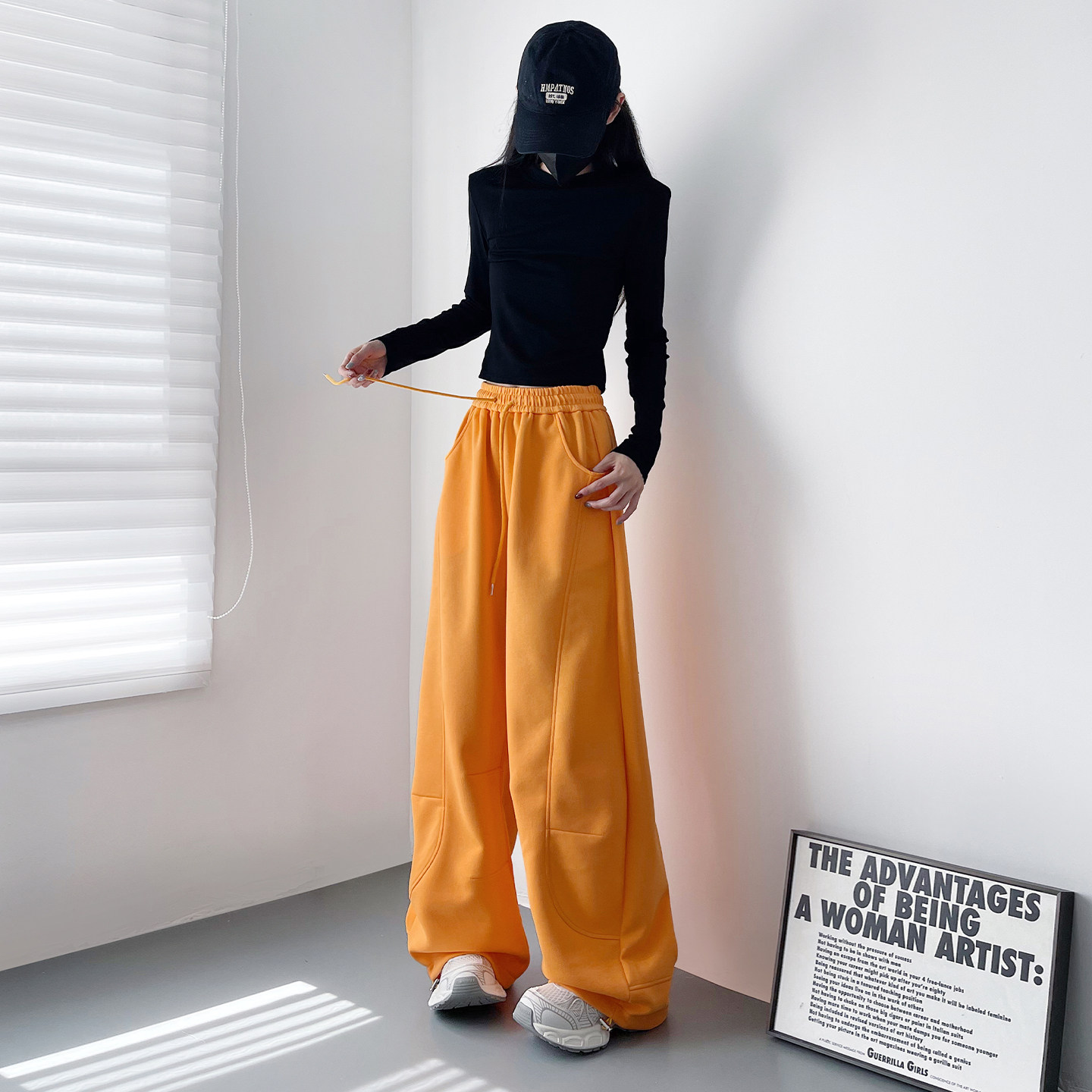 淘欧货高端定制咖色大码抽绳阔腿裤女2025冬季新款运动风百搭休闲裤