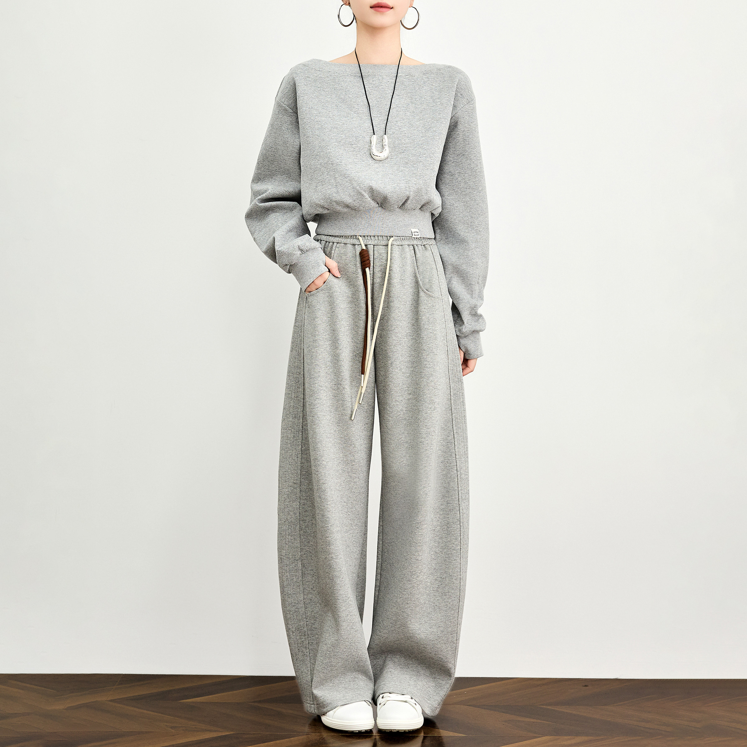 欧货高端定制咖色大码抽绳阔腿裤女2025冬季新款运动风百搭休闲裤