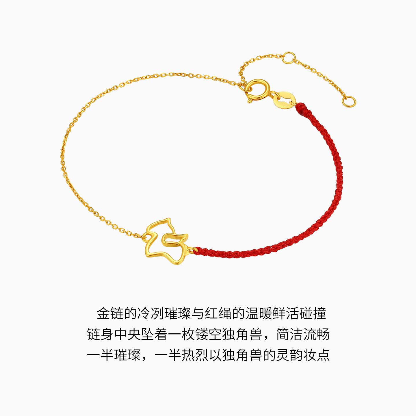 天猫潮宏基至简黄18k金手链独角兽彩金手饰职场通勤轻奢礼物情人节
