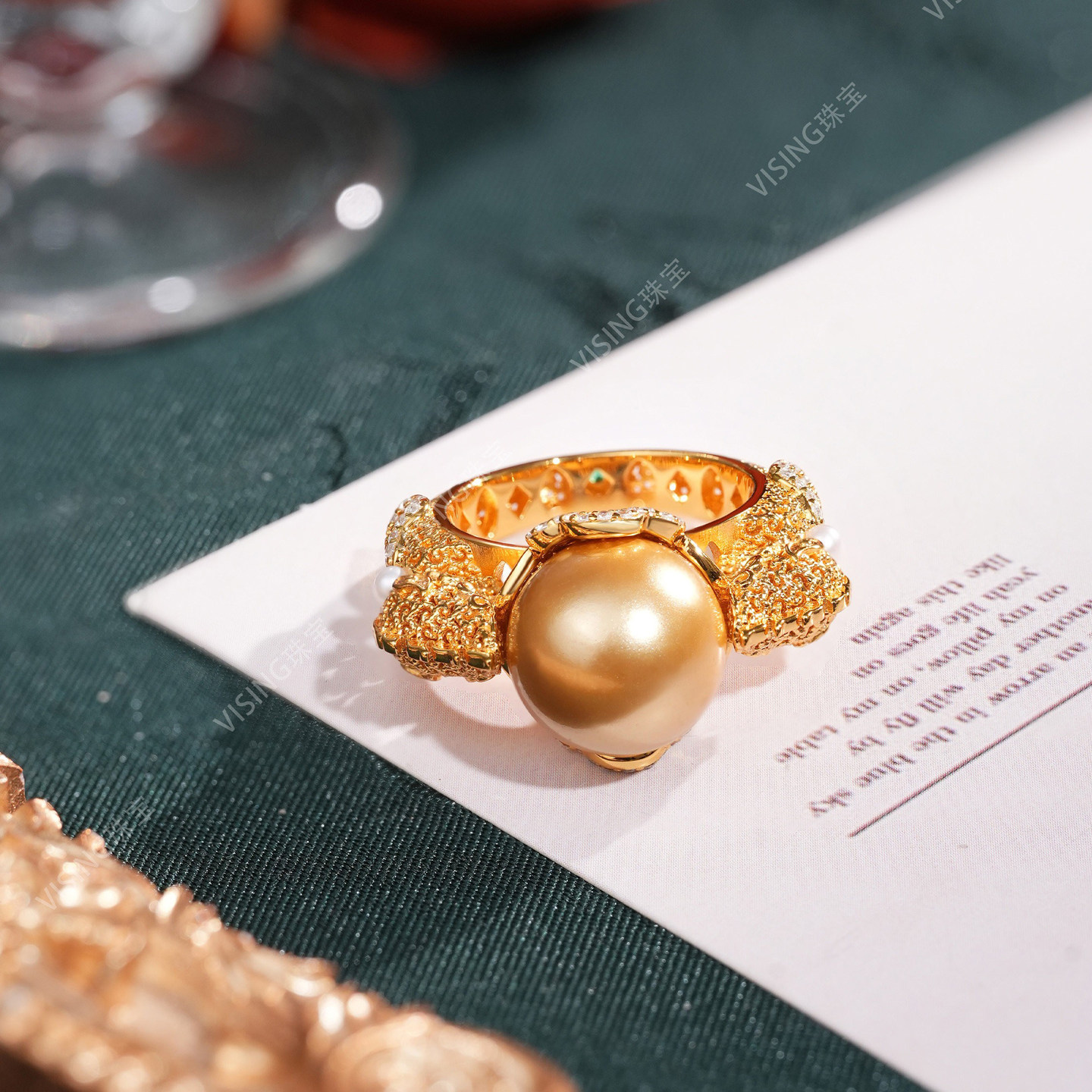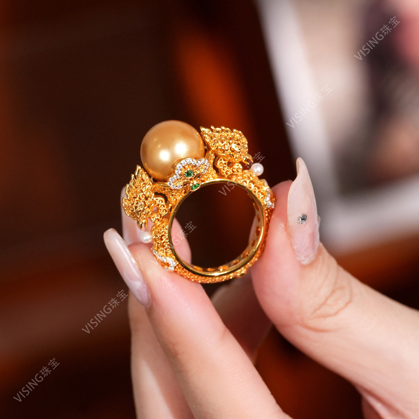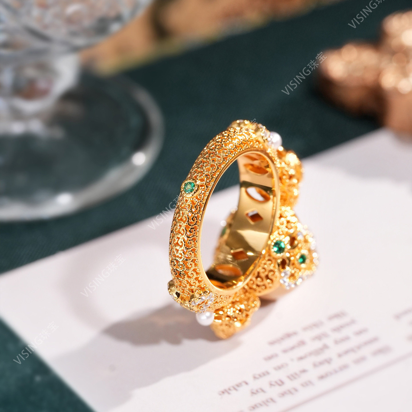 淘宝VISING黄金色花丝镶嵌凤凰金珠戒指手饰复古国风新中式