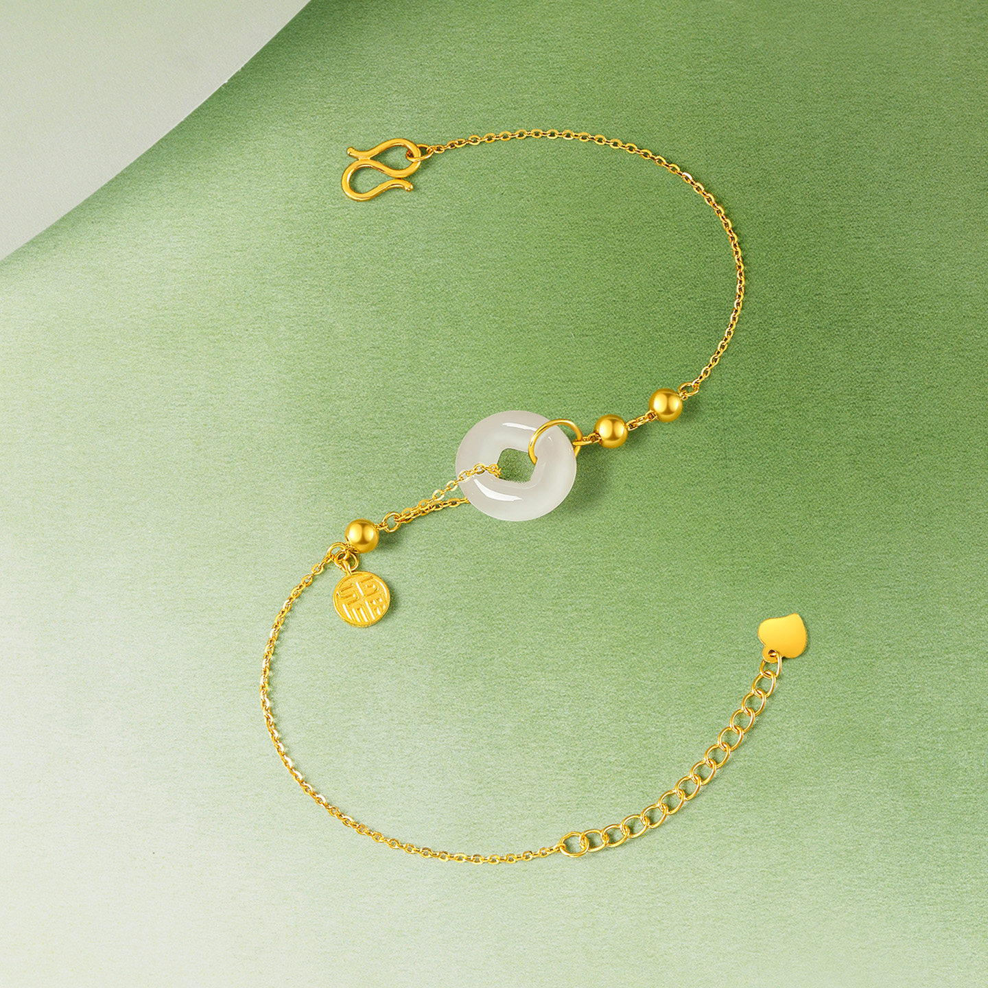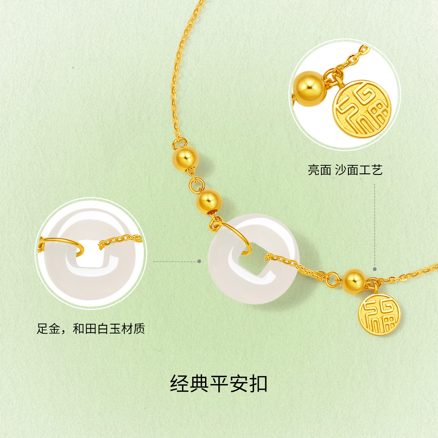 天猫周六福黄金和田玉手链守福平安扣首饰金镶玉手饰官方新年礼物