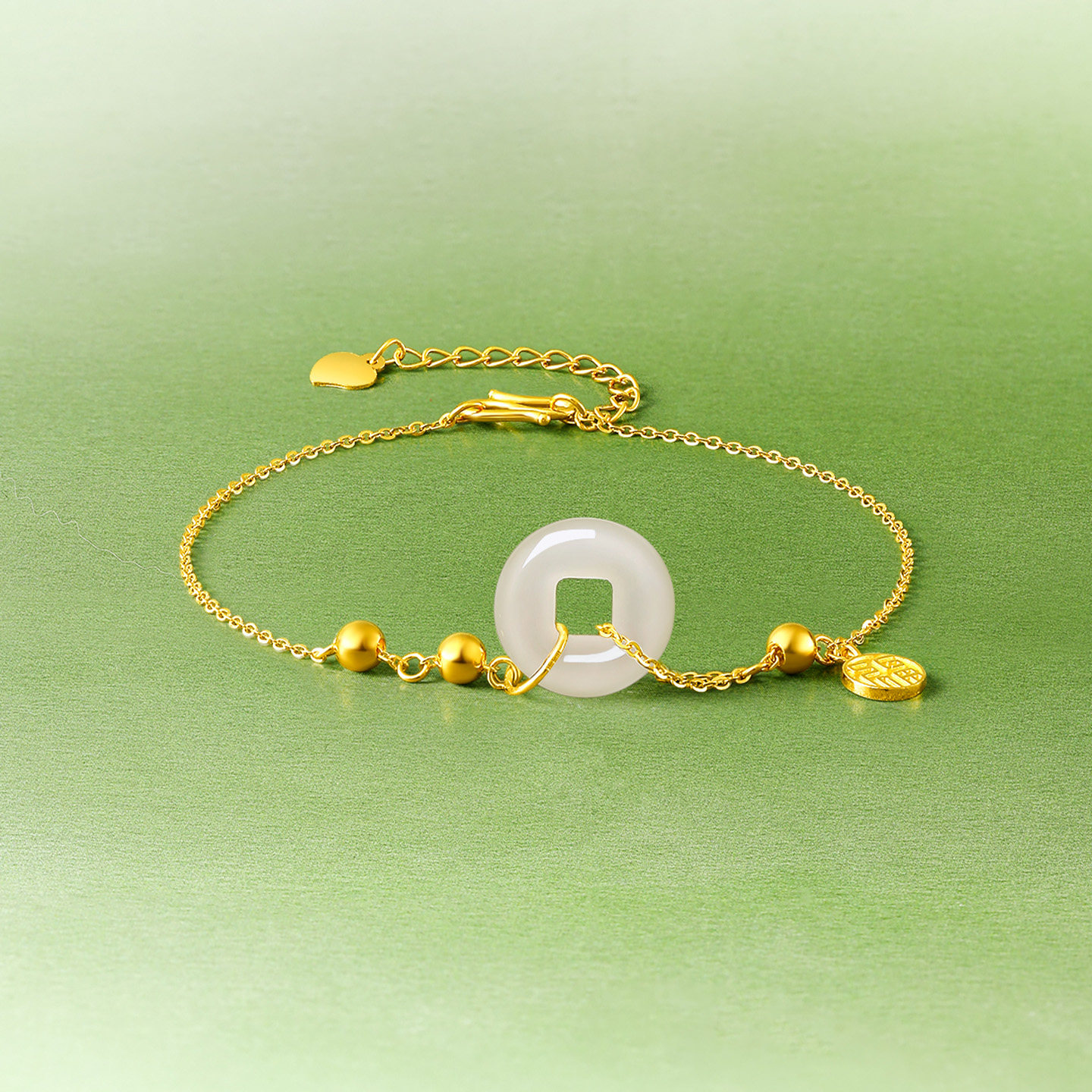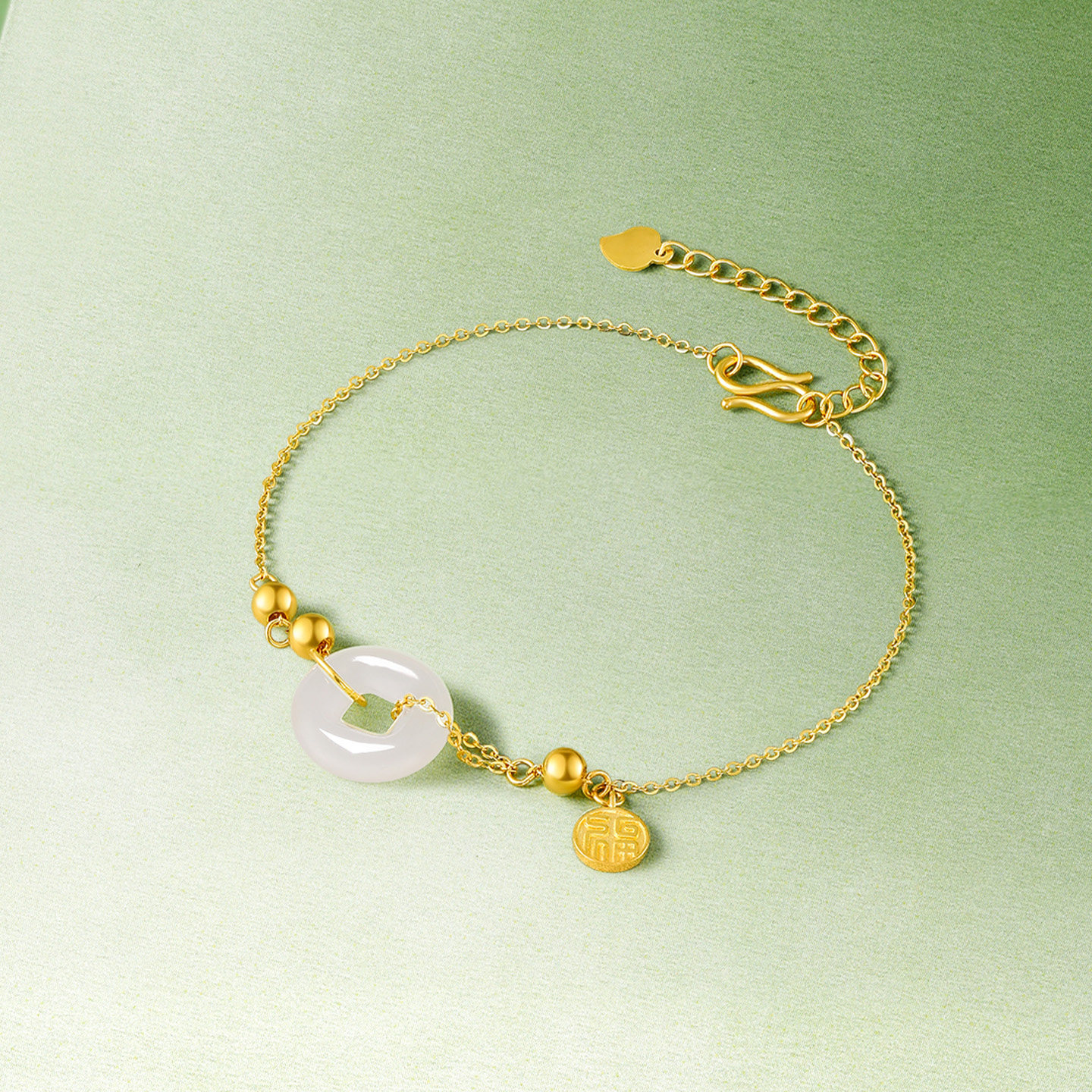 天周六福珠宝黄金金镶玉手链和田青玉小铜钱手串手饰新年礼物