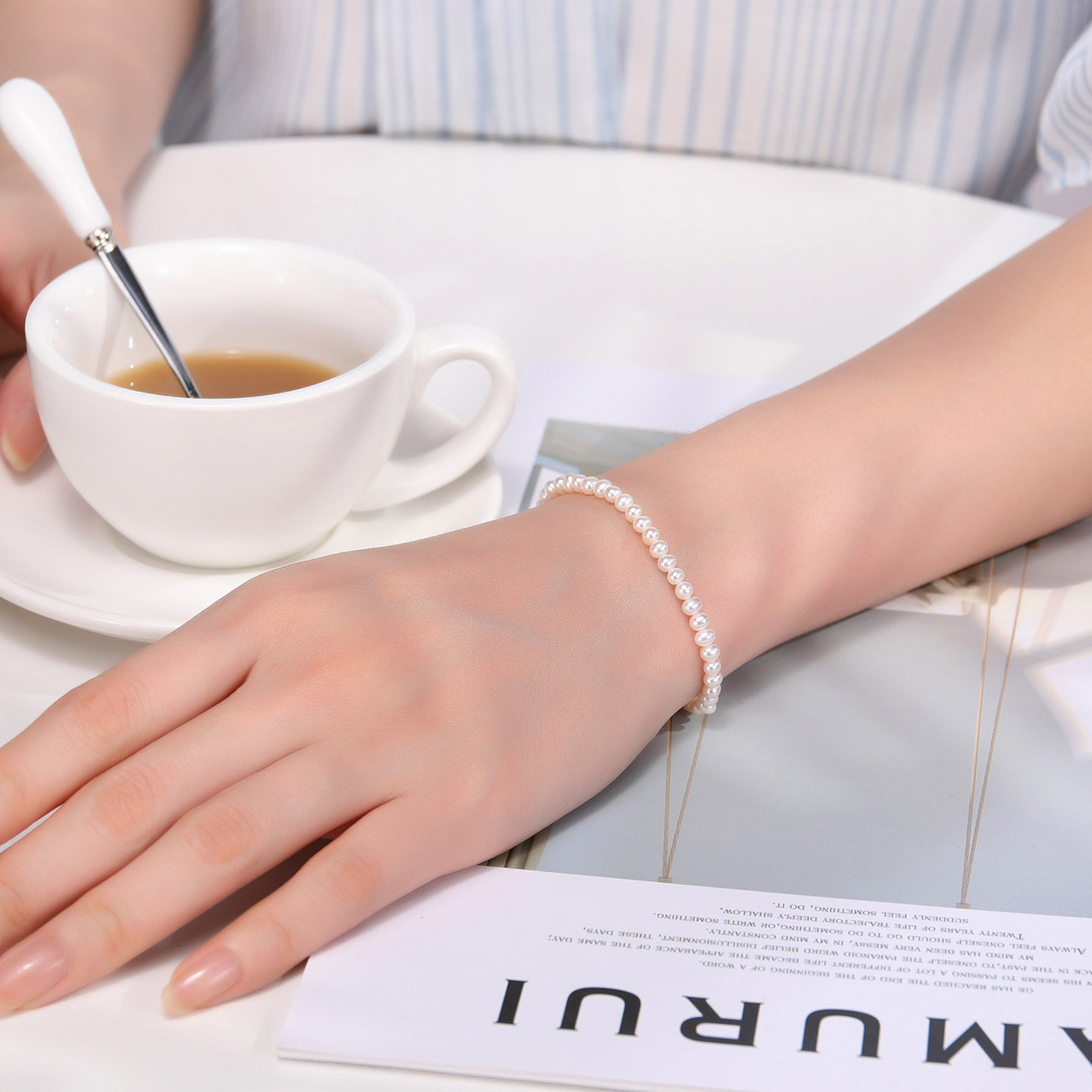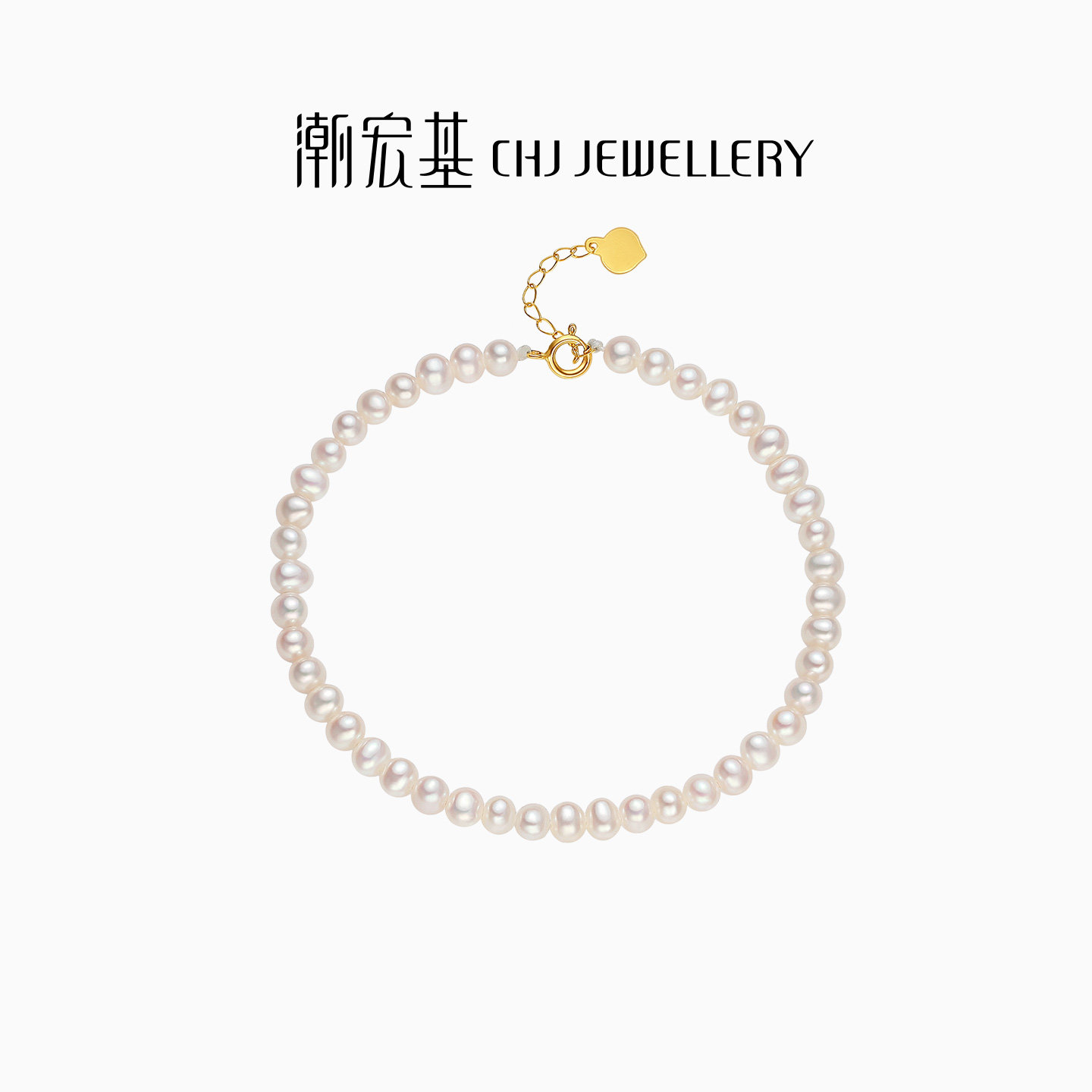 天猫潮宏基小确幸银s925珍珠手链手串手饰淡水珠简约生日闺蜜礼物J