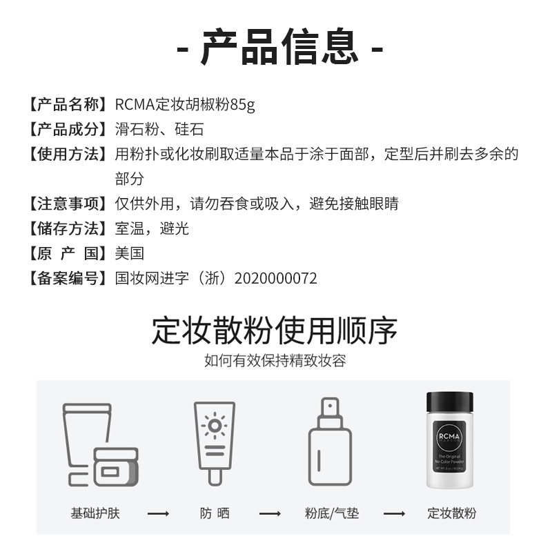 天rcma美国黑胡椒散粉肤色透明定妆蜜粉持久不脱妆