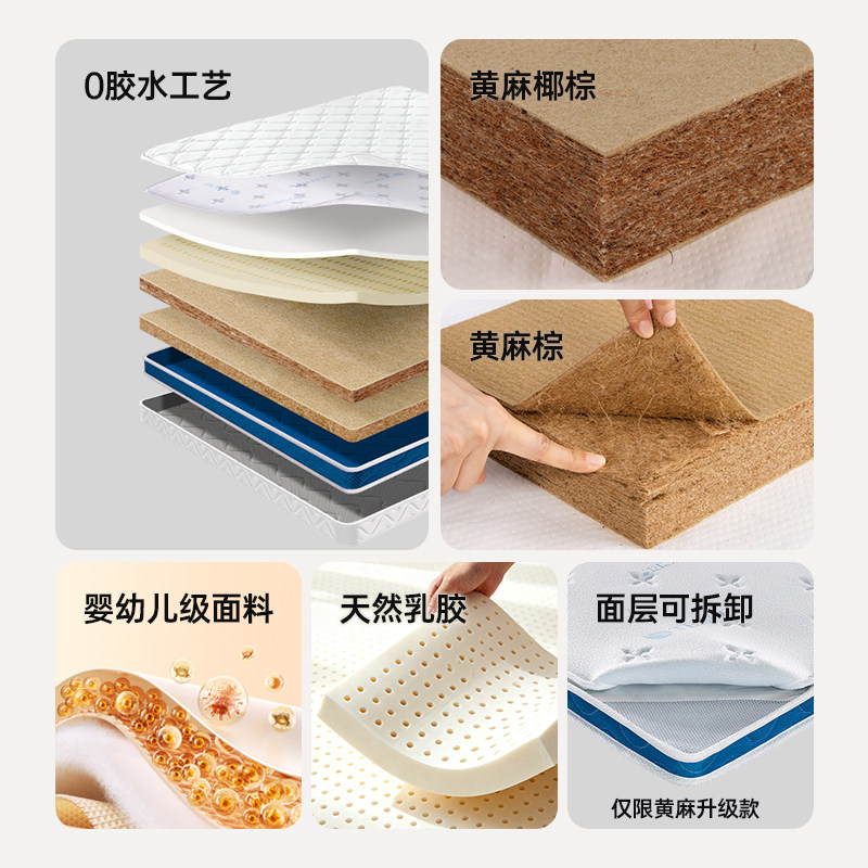 天帕沙曼儿童椰棕床垫偏硬护脊席梦思青少年0胶水乳胶床垫1.2米1.5m