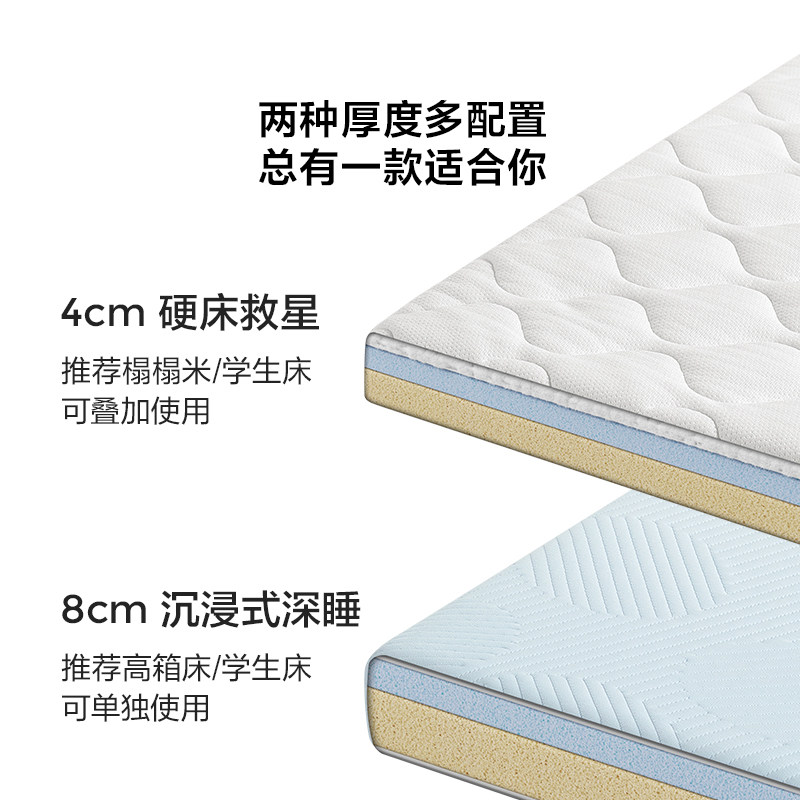 林氏家居学生床垫——林氏生活记忆棉床垫,专为宿舍及单人空间设计,尺寸90x190cm,完美适配标准学生宿舍床架。采用高品质记忆棉与天然乳胶复合层,有效贴合人体曲线,分散压力,提供舒适支撑,缓解学习久坐带来的腰背疲劳。床垫软硬适中,透气防螨,营造健康睡眠环境。外套可拆洗设计,方便清洁打理,适合学生日常使用。林氏木业专注家居品质,以环保材料与精湛工艺打造高性价比产品,兼顾舒适性与耐用性。无论是宿舍、出租屋还是小户型,这款床垫都能为学生和年轻人提供安心、静谧的睡眠体验,助力每一天活力满满。