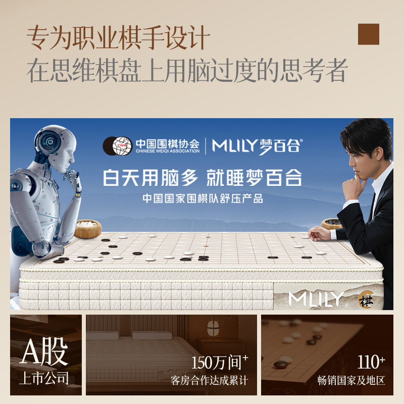 梦百合十番棋围棋零压家用床垫,融合记忆棉与独立弹簧双重科技,打造软硬适中的舒适睡感。上层高密度记忆棉贴合人体曲线,有效分散压力,带来“零压”睡眠体验;下层独立袋装弹簧,精准承托脊椎,抗干扰性强,伴侣翻身互不干扰。整体厚度适中,兼容各类床架,适合追求健康睡眠的家庭。精选透气面料,干爽抑菌,四季舒适。梦百合以围棋“十番棋”之名,寓意匠心雕琢每一处细节,致力于为国人提供高品质、高性价比的睡眠解决方案,让每晚安睡如棋局般从容自在。