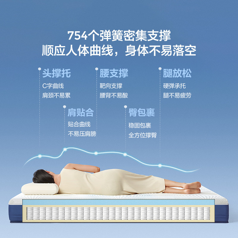 蓝星林氏家居加厚记忆棉床垫,采用独立弹簧系统,有效分散身体压力,抗干扰性强,伴侣翻身不影响睡眠。床垫表层为高密度记忆棉,贴合人体曲线,提供舒适支撑,底层搭配硬质支撑层,适合偏好硬睡感人群。整体设计科学护脊,透气防螨,健康环保。卷包工艺便于运输与入户,轻松通过狭窄楼道。现享受政府补贴政策,性价比极高,是家用双人床垫的理想之选。蓝星林氏专注品质家居,致力于为万千家庭打造安心、舒适的健康睡眠体验。