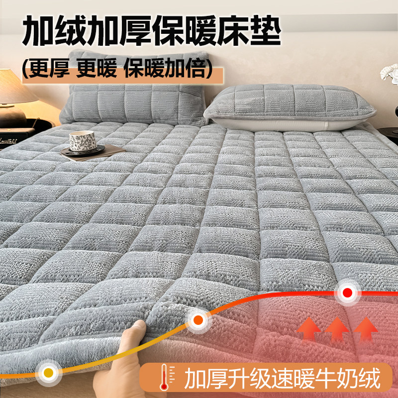 天猫冬季加厚床垫牛奶珊瑚绒褥子180x200单人加绒毛毯铺床防滑可机洗