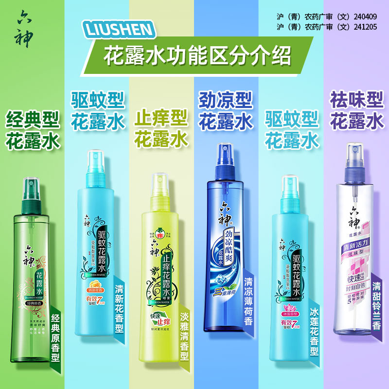 淘正品六神花露水花香止痒花漾清新香型花露水喷雾180ml夏季清凉