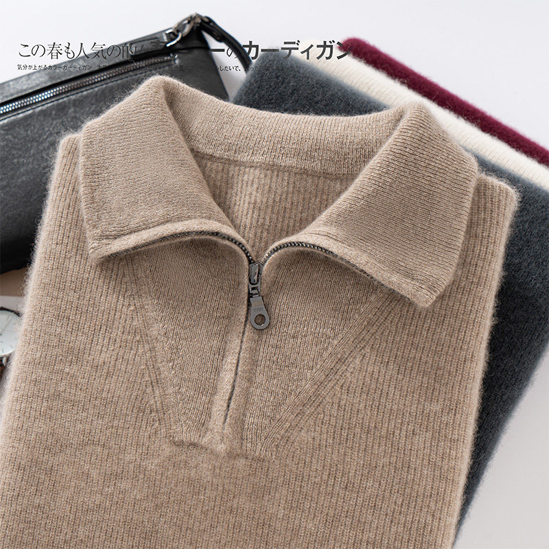 淘宝高品质100%纯山羊绒衫男元宝针半拉链海军翻领加厚毛衣羊毛针织衫