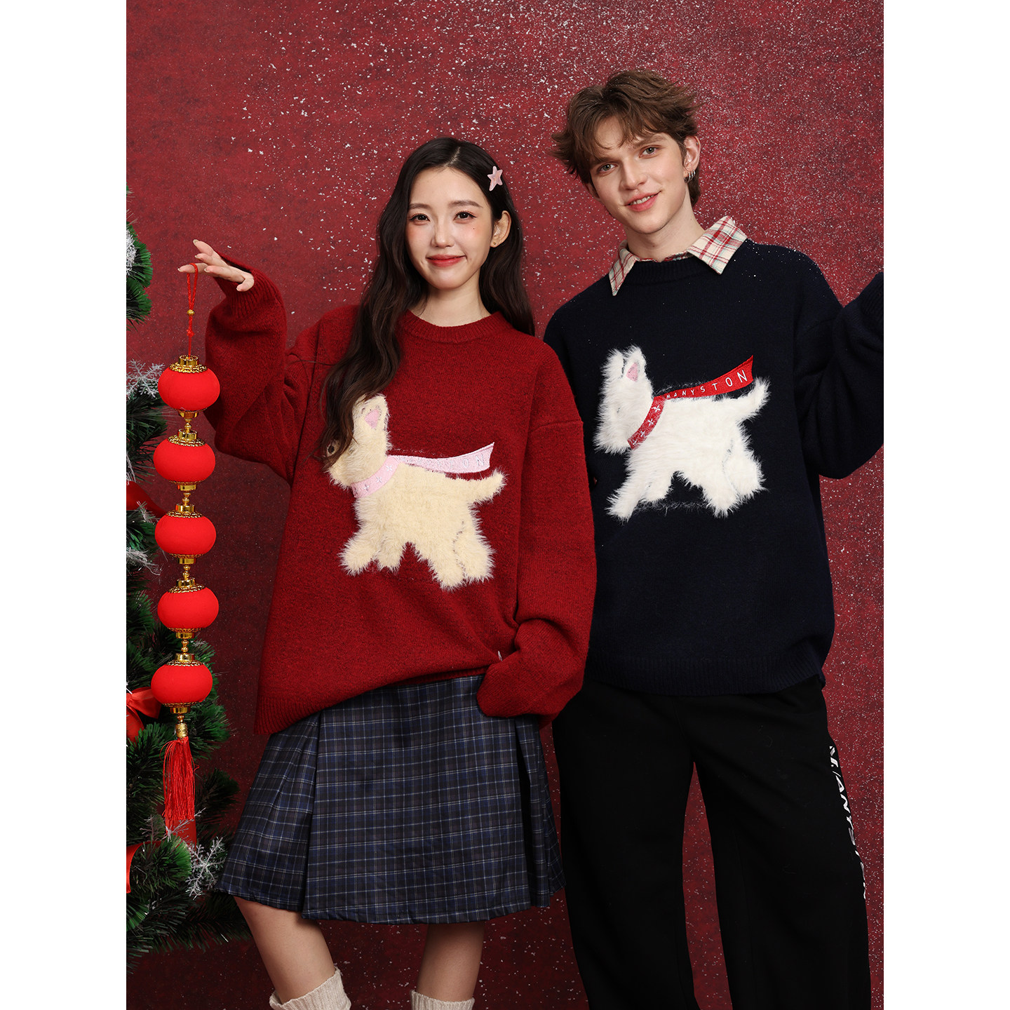 淘宝MANYSTON美式刺绣圆领毛衣男款冬季青少年宽松休闲保暖针织衫上衣