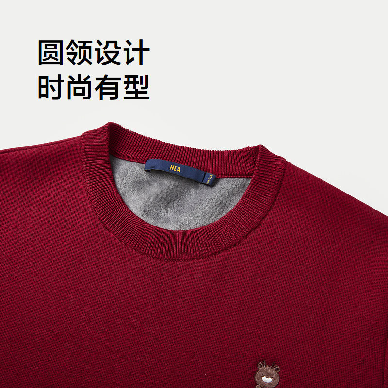 天猫HLA/海澜之家加绒加厚针织衫冬远红外保暖微弹圆领卡通刺绣毛衣男