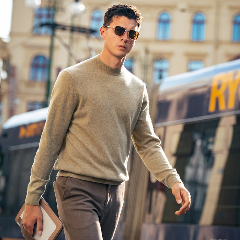 天满满气质~半高领羊绒衫男士纯山羊绒衫纯羊绒毛衣针织打底衫秋冬