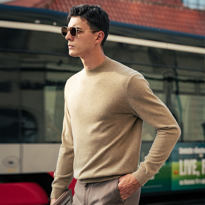 满满气质~半高领羊绒衫男士纯山羊绒衫纯羊绒毛衣针织打底衫秋冬