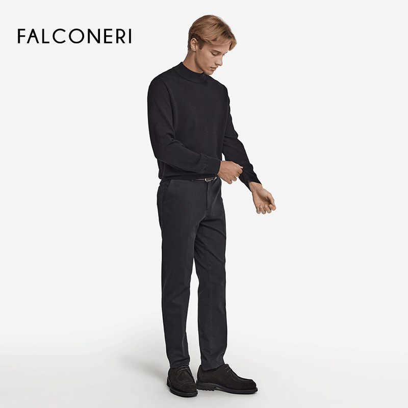 FALCONERI男士经典时尚休闲长袖半高领毛衣UML228X,精选优质山羊绒材质,触感柔软细腻,保暖性卓越。半高领设计简约大方,贴合颈部线条,既防风又显气质,适合秋冬季节日常通勤或休闲穿搭。修身剪裁凸显男性优雅轮廓,搭配西装裤或牛仔裤皆宜,轻松打造都市型男风范。针织工艺精湛,走线工整,耐穿不易变形。多色可选,满足不同风格需求。无论是商务休闲还是周末出行,这款毛衣都能为您提供舒适体验与时尚质感,是男士衣橱中不可或缺的百搭单品。
