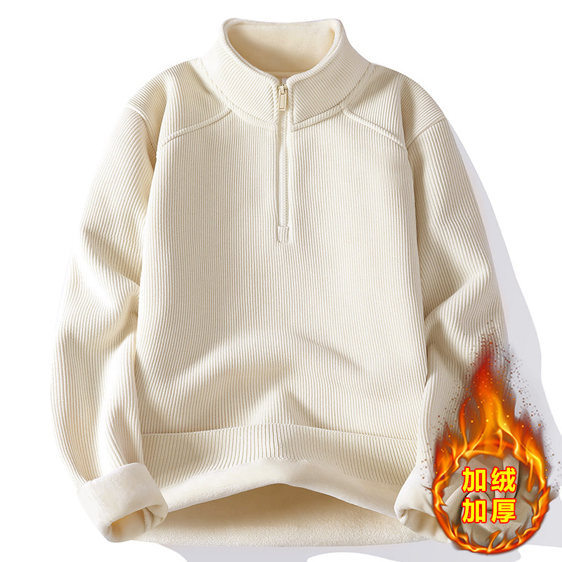 淘啄木鸟休闲慵懒风翻领半拉链毛衣男秋冬季宽松百搭针织衫打底衫潮