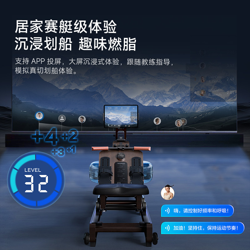 佑美划船机家用可折叠水磁双阻智能健身器材燃脂综合训练划船器R7