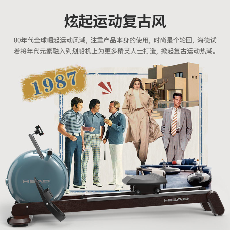 天猫HEAD海德划船机家用健身器材小型智能运动磁阻有氧拉背双轨室内滑