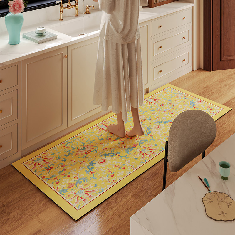 2025新款亮丽立体花卉厨房防滑垫软硅藻泥吸水吸油家用地垫可裁剪