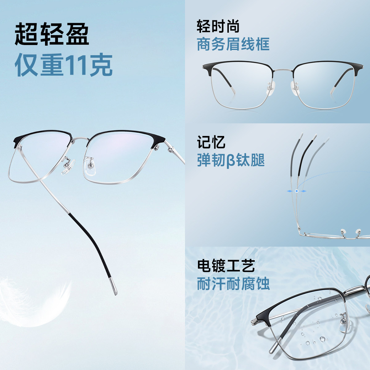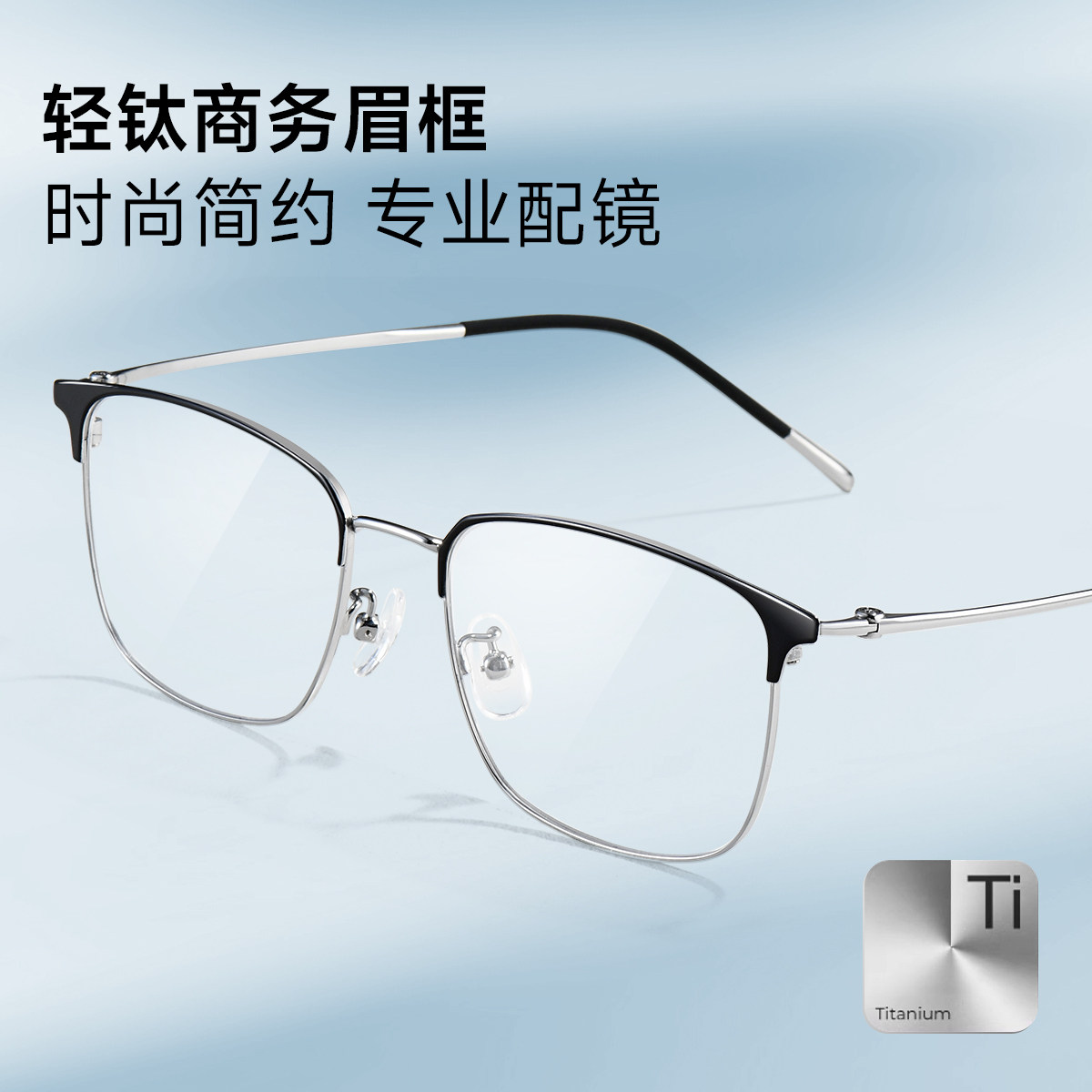 天猫明月超轻钛合金近视眼镜男斯文理工眼睛框女有度数防蓝光YF6393