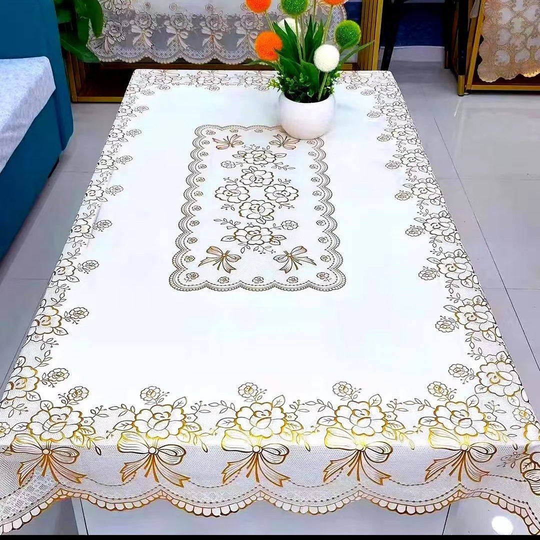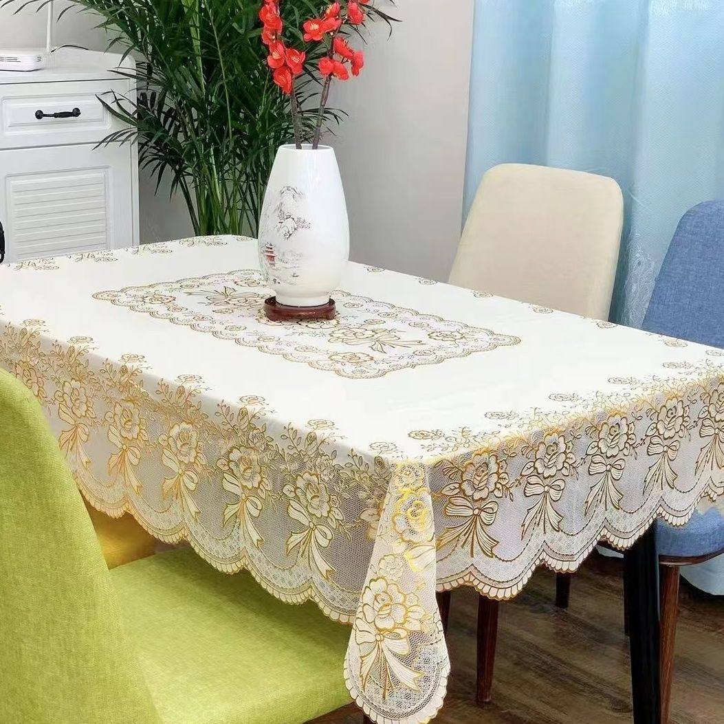 欧式家用pvc塑料正方形桌布蕾丝烫金防水防烫免洗八仙桌台布盖布