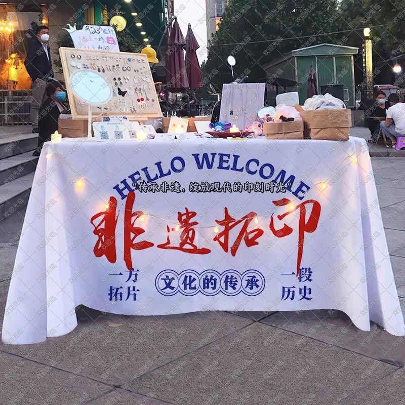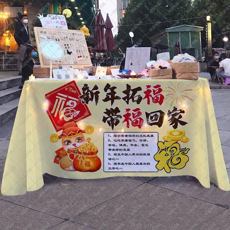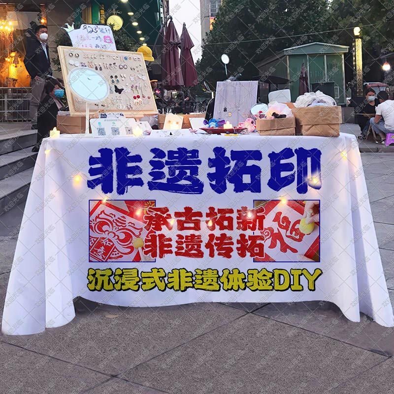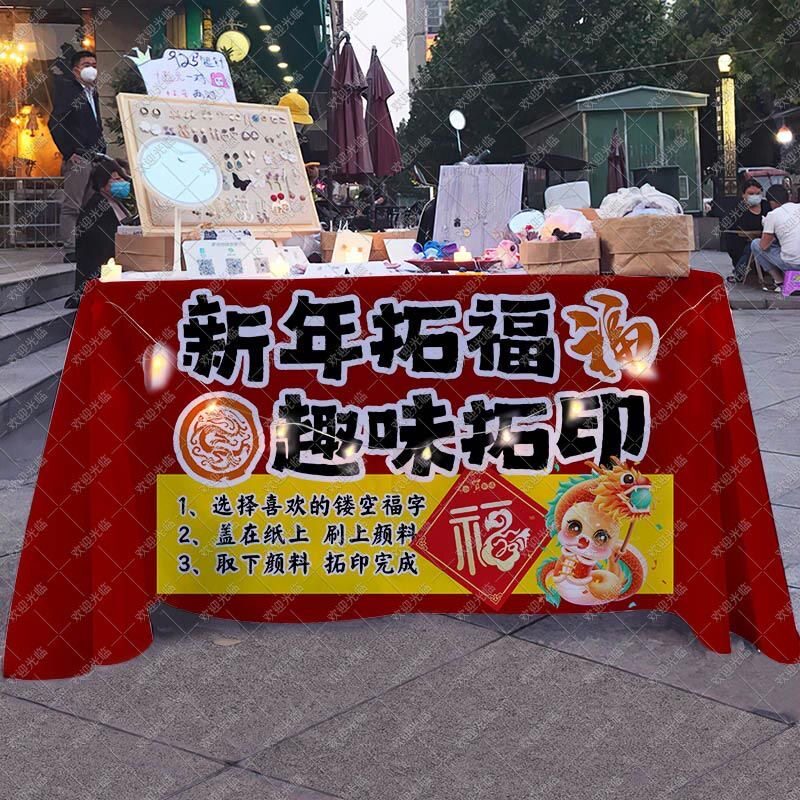 淘宝非遗拓印桌布新年拓福活动摆摊广告布国风摊台布幼儿园游戏背景布