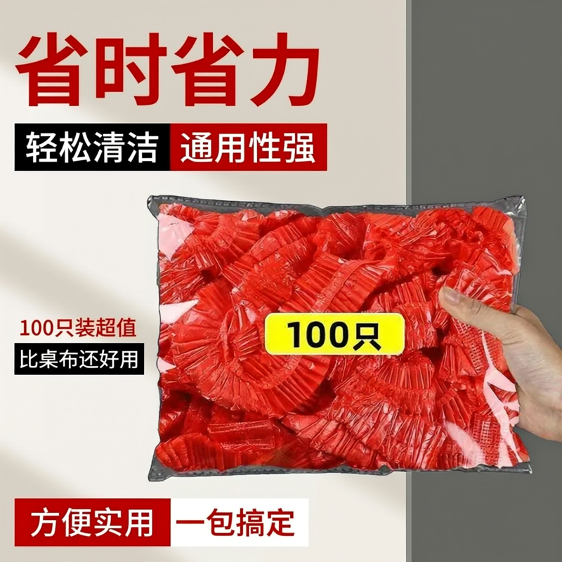 淘宝一次性束口桌布超厚红色松紧圆形透家用加厚防水防油防潮酒席婚庆
