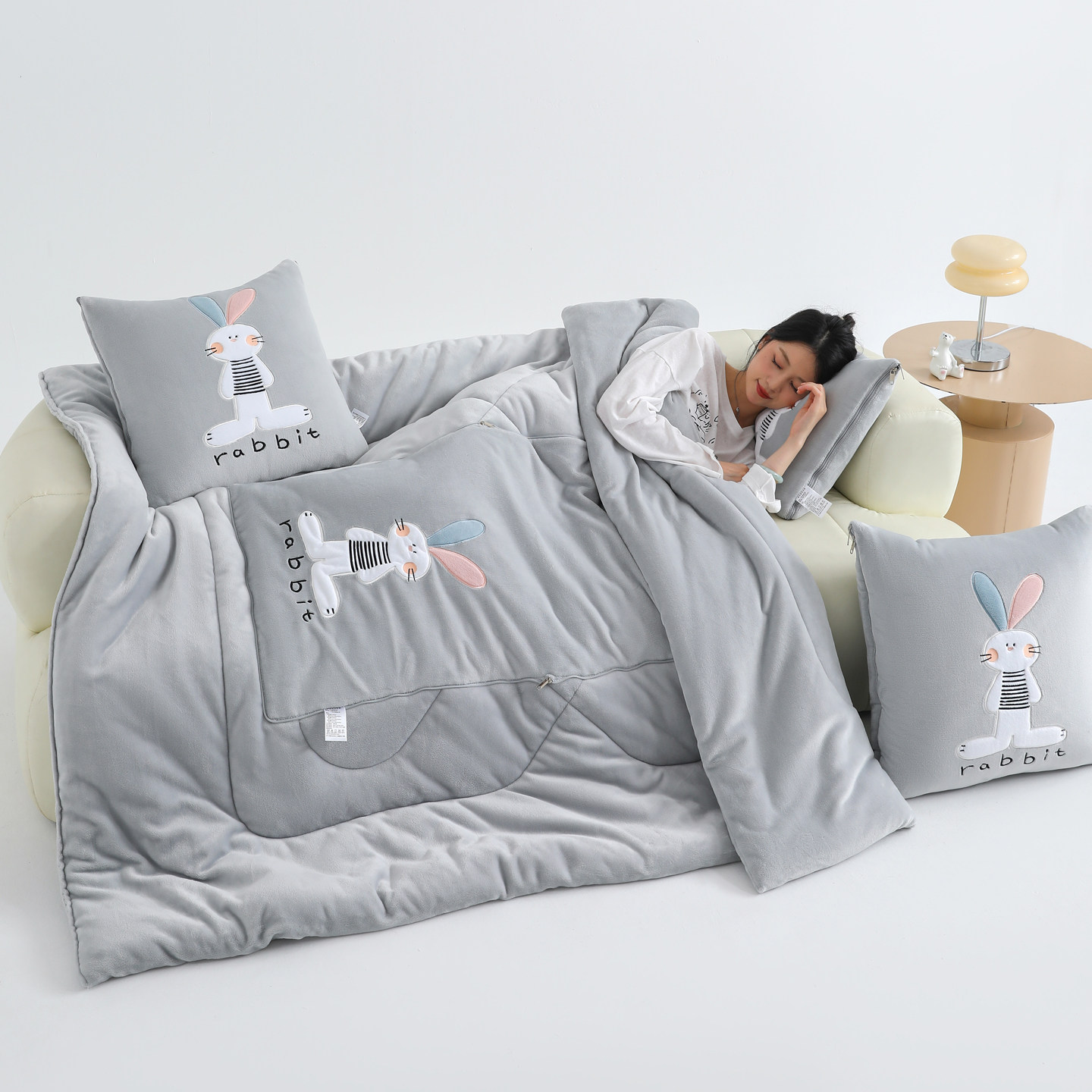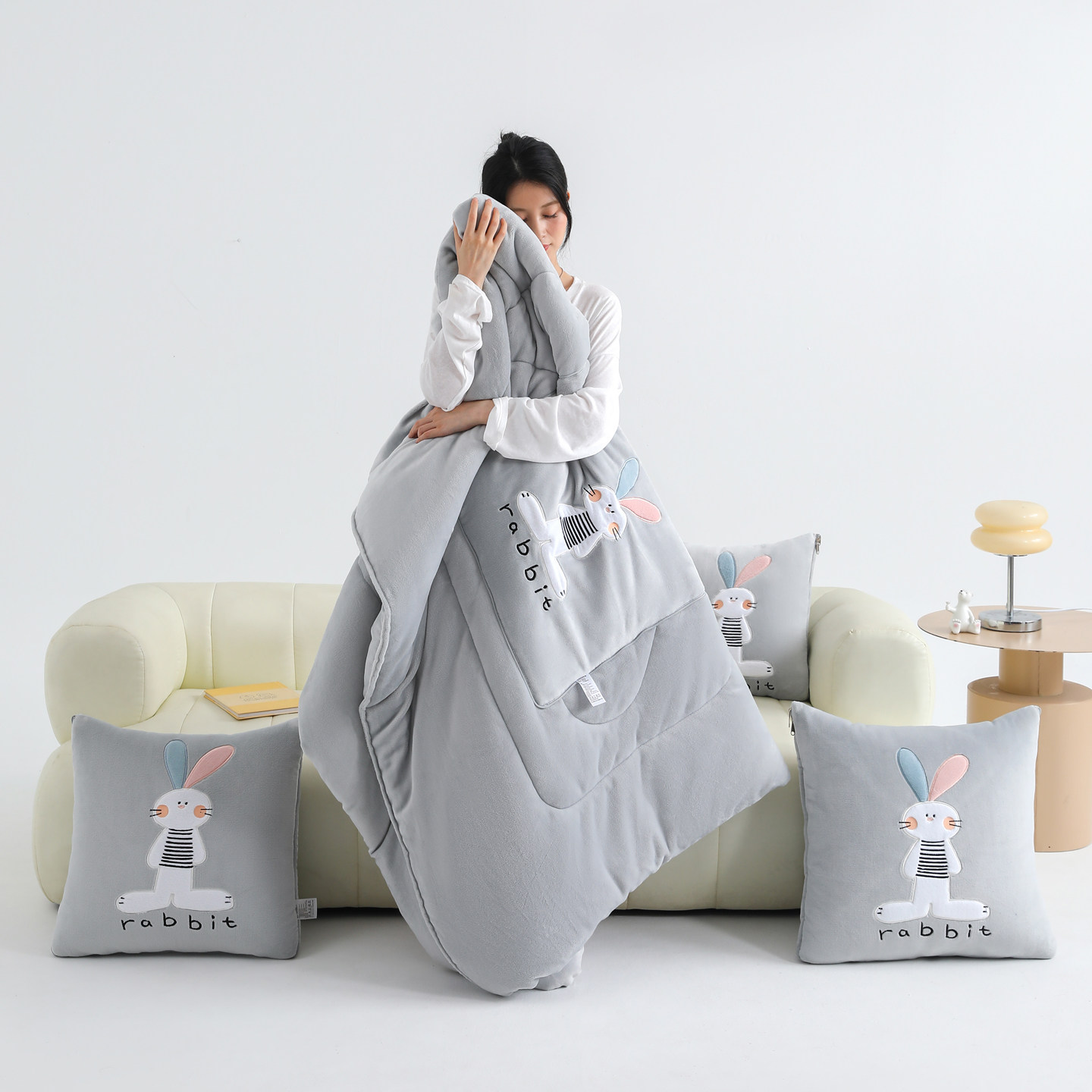 兔毛绒 加厚抱枕毯子二合一车用午睡毛毯被子两用枕头被靠枕盖毯