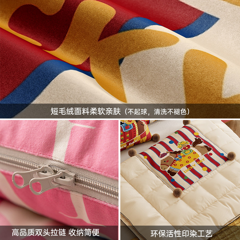 加厚加绒豆豆绒卡通贴布绣多功能抱枕被子两用沙发汽车载床上午睡