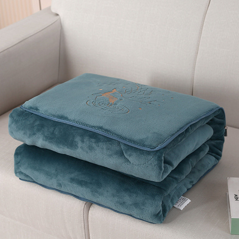 天加厚冬季珊瑚绒毯子二合一午休抱枕被子两用折叠汽车载用枕头定制